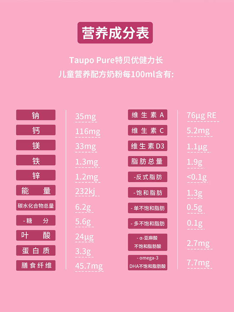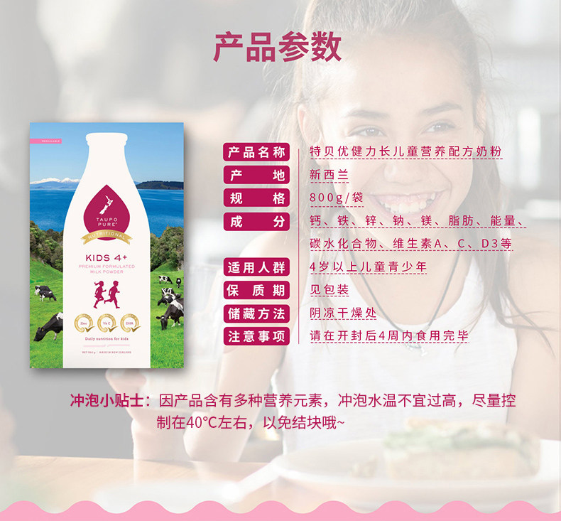 【临期特价】TAUPO PURE 特贝优4岁以上儿童营养粉800g 单袋(保质期:2021-01-29)