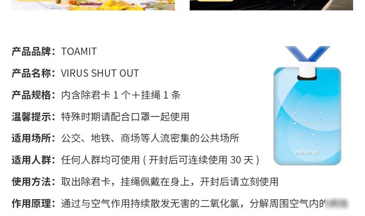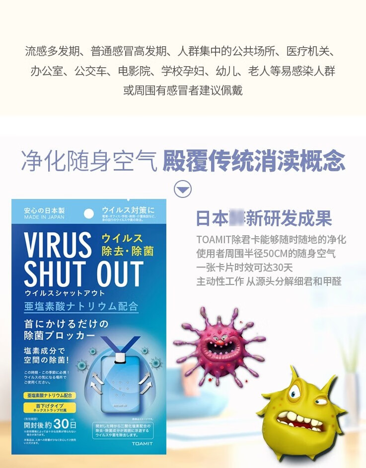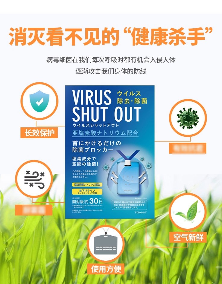 日本VIRUS SHUT OUT儿童防病毒除菌卡防细菌流感消毒抑菌卡袋