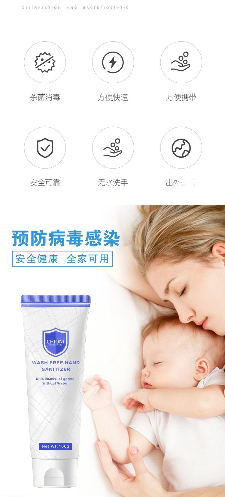 CHIONI 高活性银离子 抑菌免洗 洗手液凝胶 100g